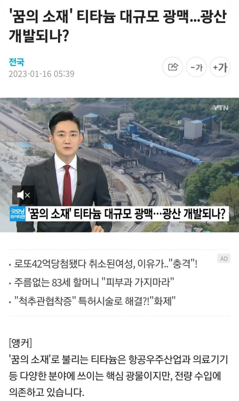 약 2억2천만 톤 규모의 티타늄 광맥을 확인