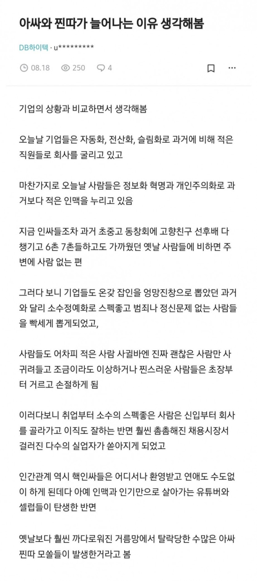 블라인드에 올라온 아싸와 찐따가 느는 이유