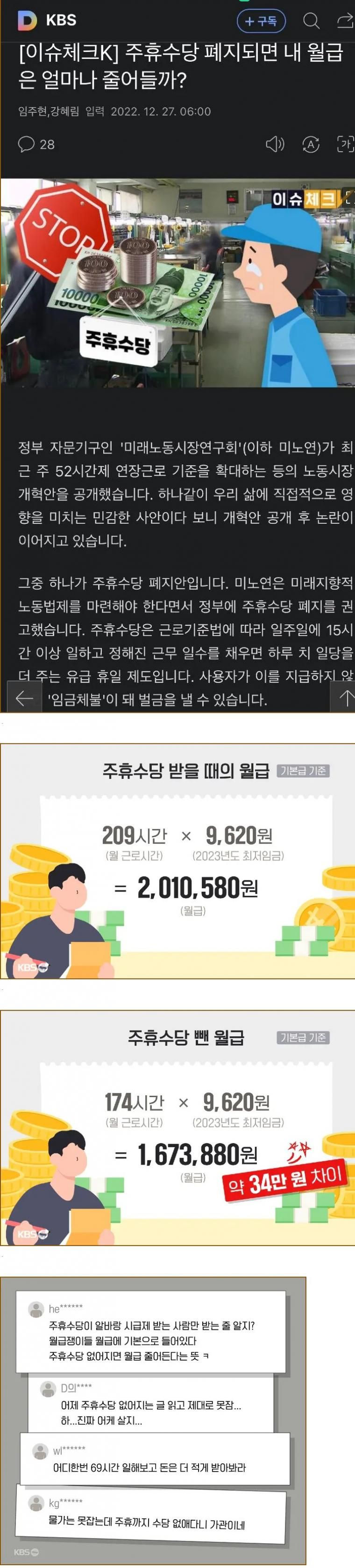 주휴수당이 없어지면 월급은 얼마나 차이날까?