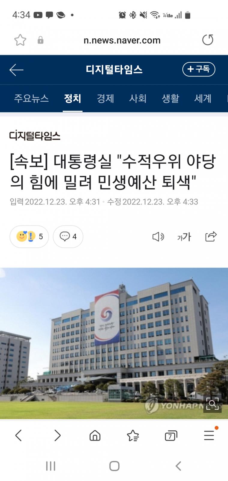 대통령실 야당의 힘에 밀려 민생 예산 퇴색