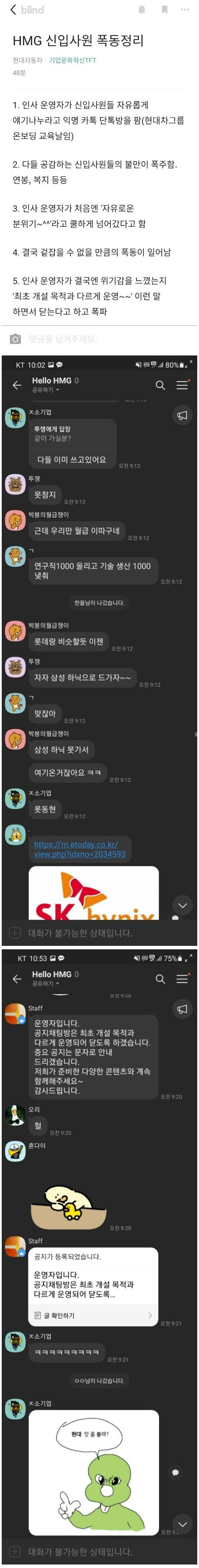 현대차 신입사원 단톡방