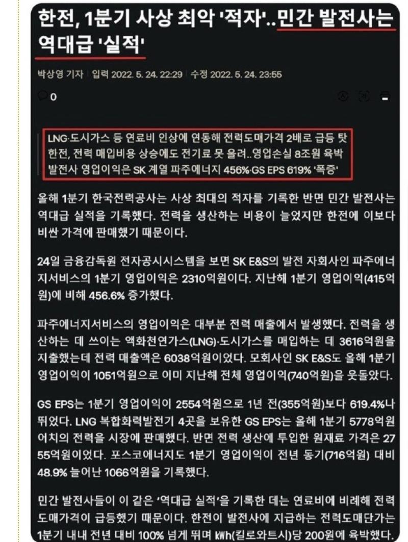 3. 이외에도 재벌들한테 산업용전기라고 생산단가보다 싸게 팜. 재벌들 한해 절감액만 4천억