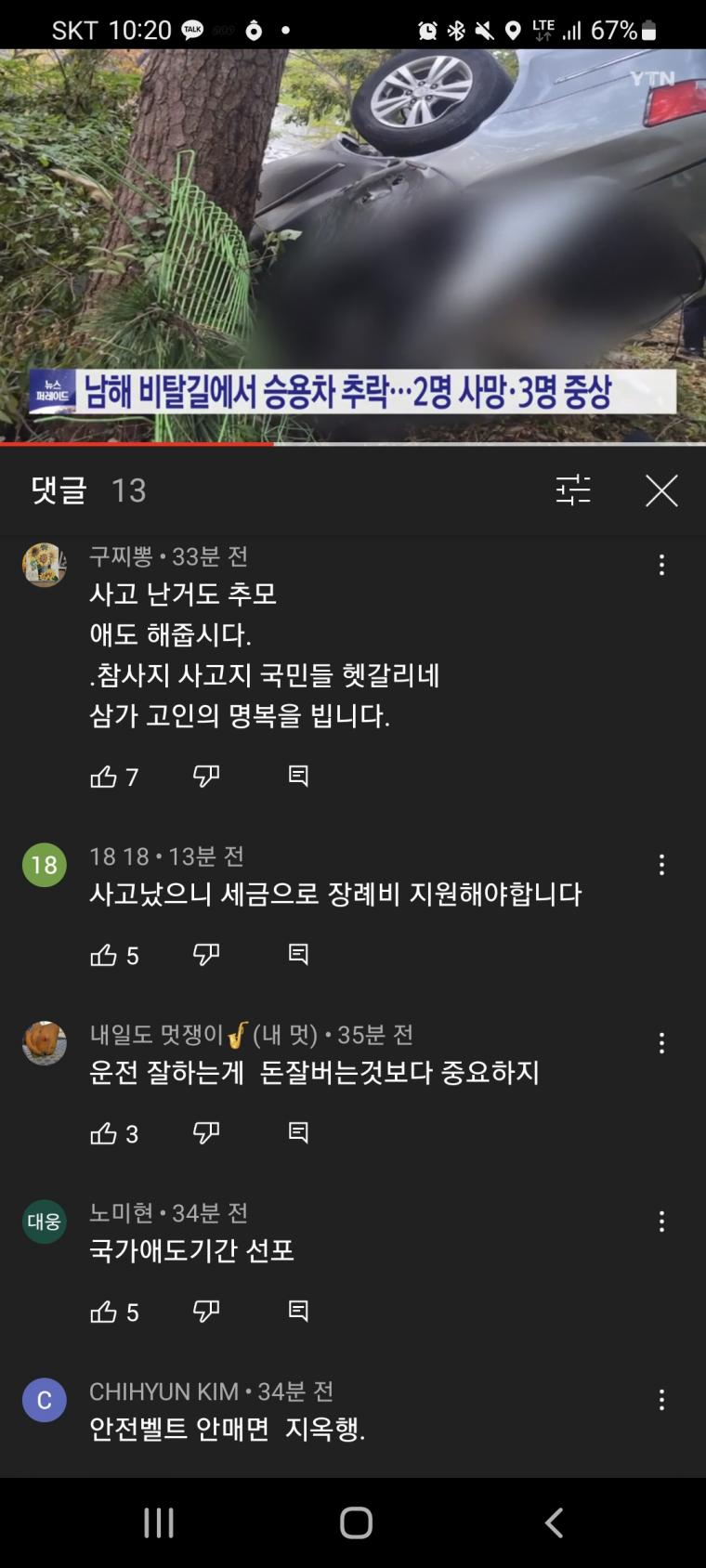 유튜브 사건 사망뉴스에 달린 말도 안되는 댓글
