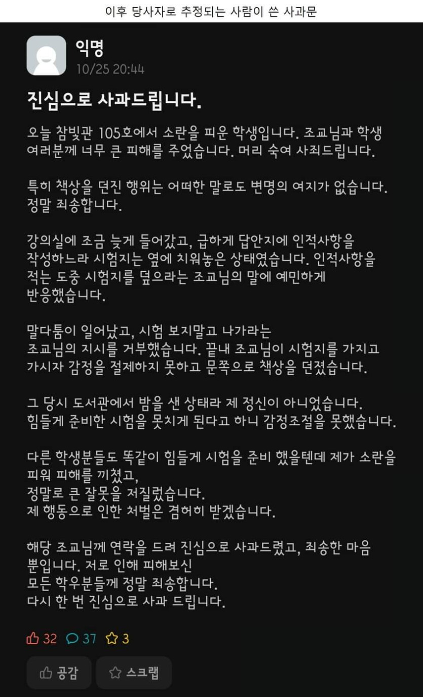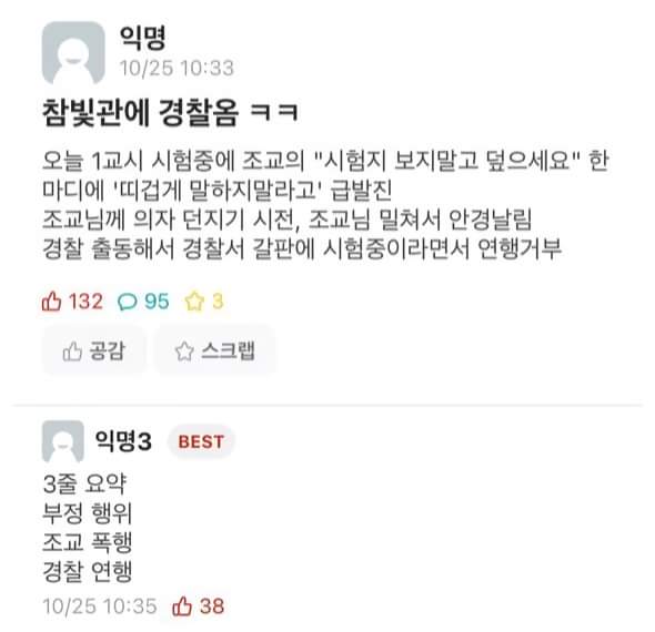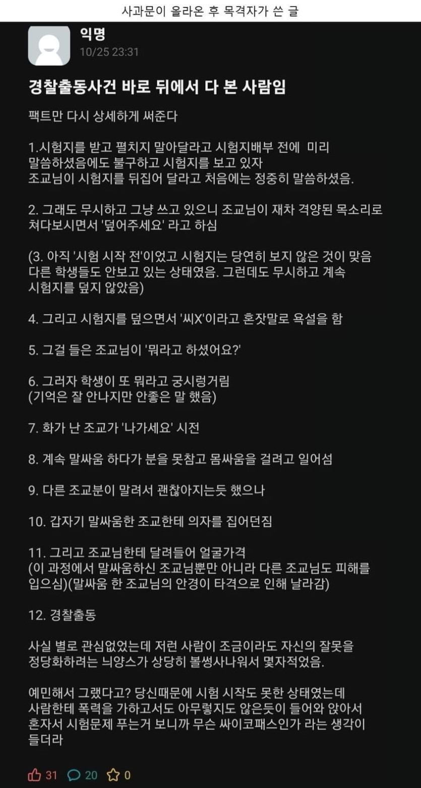 시험 도중 조교한테 급발진한 사건