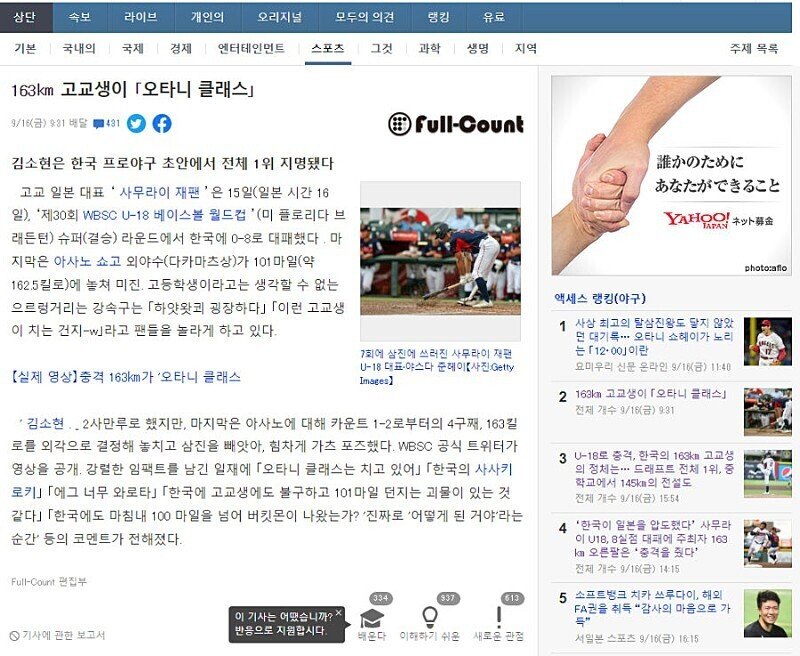 (기사 제목 - 163km/h 고교생이 오타니 클래스)