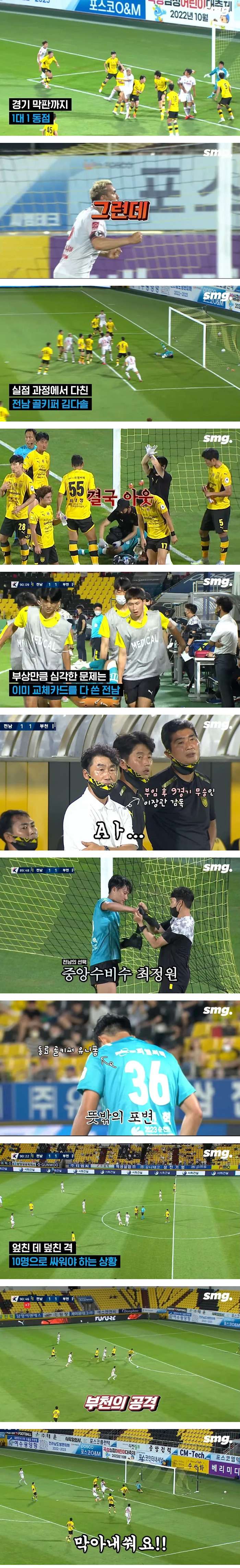 교체 카드가 없는 상황에서 골키퍼가 부상을 당했을 때