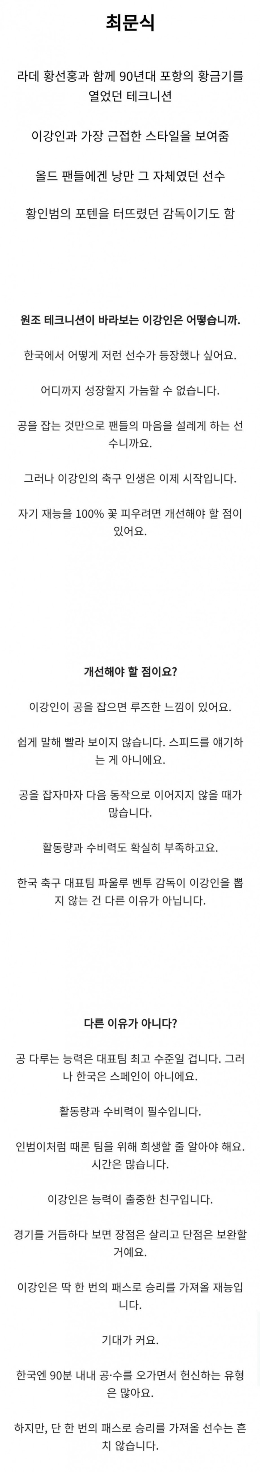참고로 최문식 감독은 현역 시절 이강인과 가장 비슷한 스타일 이였고