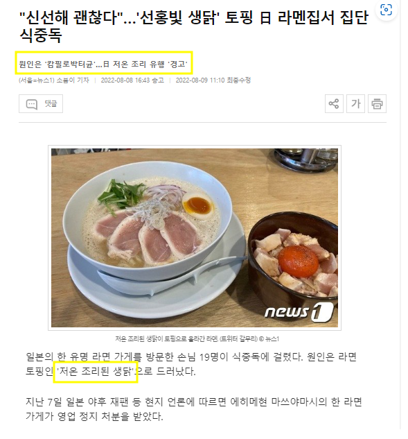 신선해서 괜찮다는 일본 미쉐린 라멘집 생닭토핑 결말