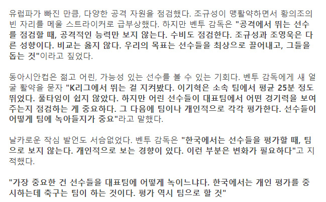 한국은 선수 평가를 자제해야된다는 벤투 감독