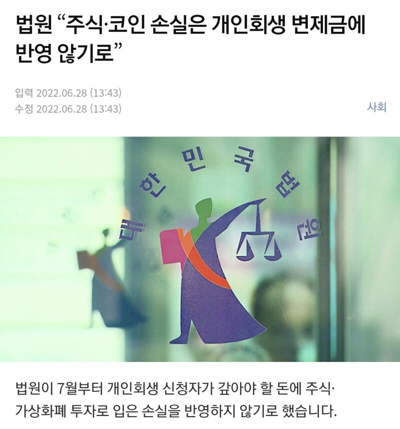 이에 따라 개인회생 채무자가 갚아야 하는 총 금액을 정할 때 주식·가상화폐를 ‘구매할 당시 가치’가 아닌 ‘남아있는 가치’를 반영하게 돼 갚아야 할 돈이 줄어듭니다.