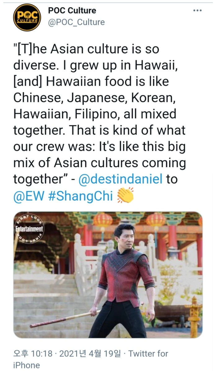 샹치 개봉 후 반응 : 하와이는 동양문화권에 속하며 이는 샹치가 증명한다