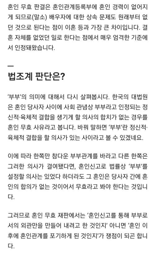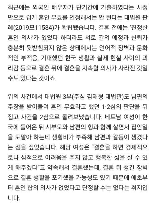 혼인무효라는 1,2심 판결을 대법원에서 뒤집음..