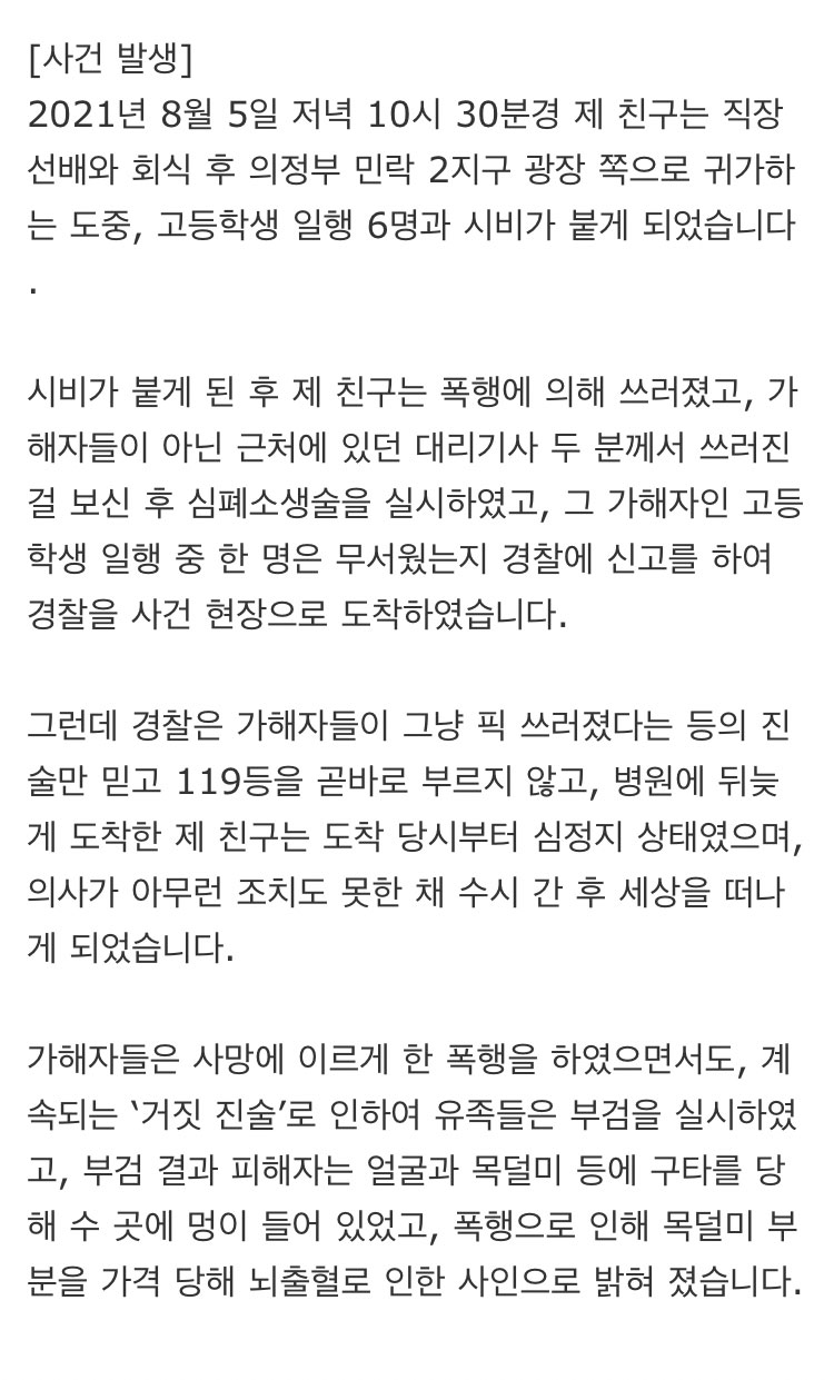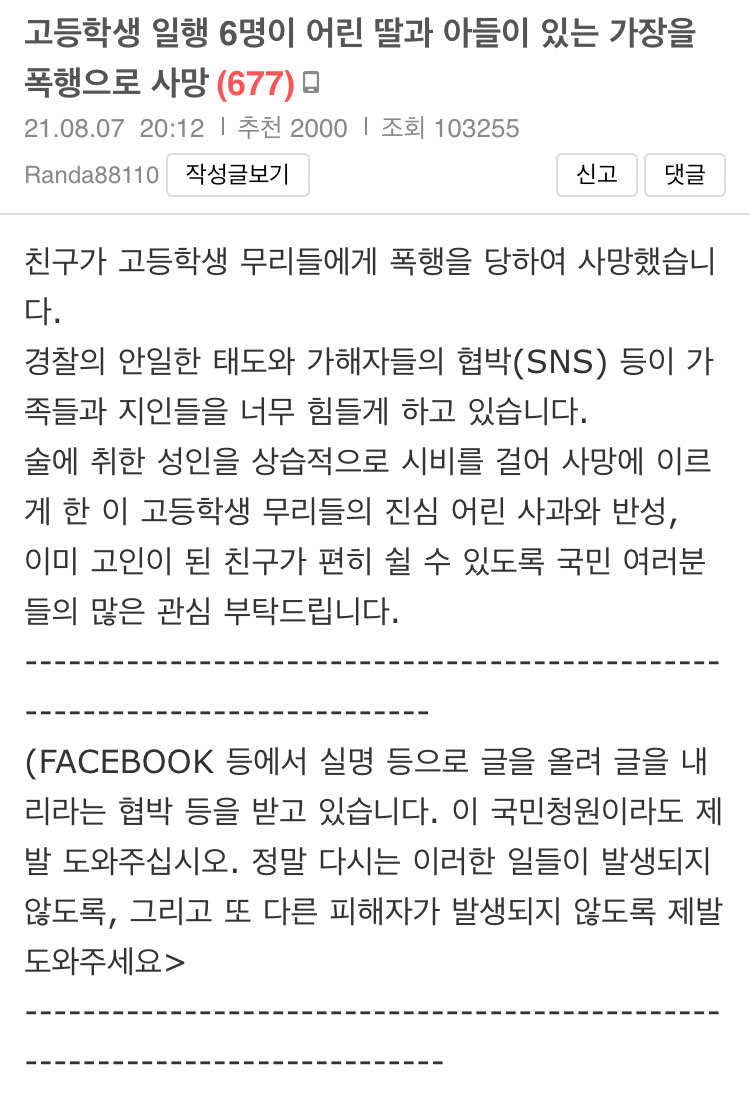 고등학생 6명 어린 딸과 아들 있는 가장을 폭행해 사망