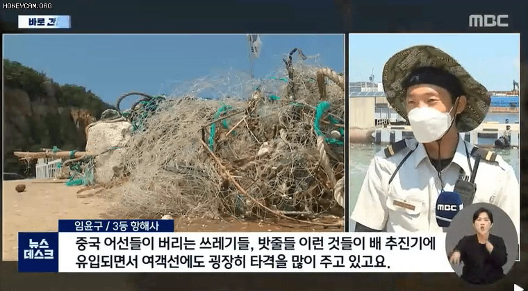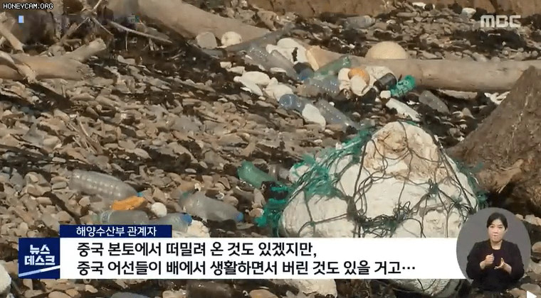 중국 본토, 중국 어선에서 버린 각종 쓰레기가