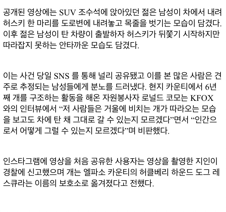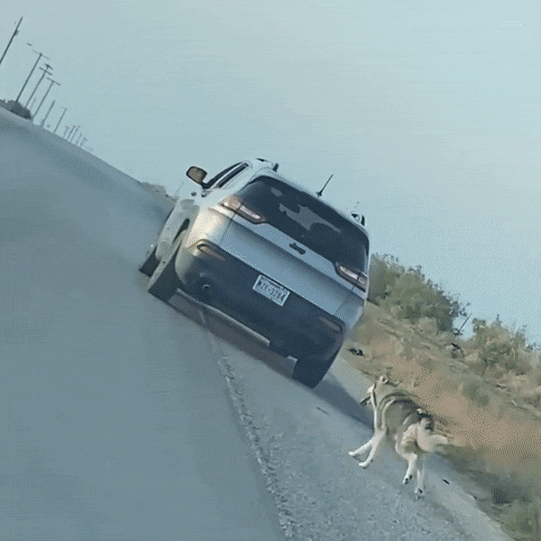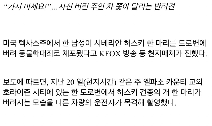 자신을 버린 주인의 차를 쫓아가는 개