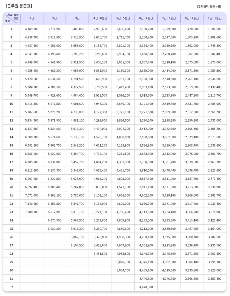 오늘은 군무원, 군인 봉급표에 대해 알려드렸는데요